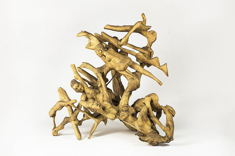 The region where she lives has always offered the artist plenty of raw material, and wood is more resilient than clay as a medium. As she became proficient, she produced more complex, multifigured compositions such as Flood Mozambique. The flood theme is significant since the artist cites a dream of a piece of wood washing up in floods in her region as being the catalyst for her turn to woodcarving.